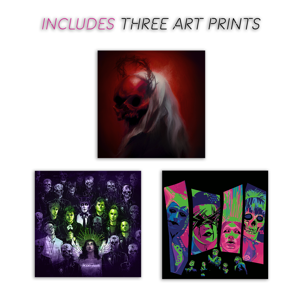 - Three exclusive art prints